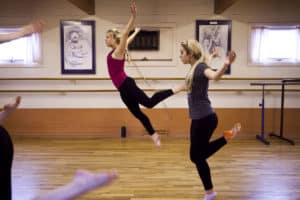 Paige Poulsen, left and Diana Koehn, right dance during rehearsals at the Academy of Dance Arts. Both girls are part of the student-run company, Ekphrasis. Photography credit: Sean Ryan, RC Journal Staff.