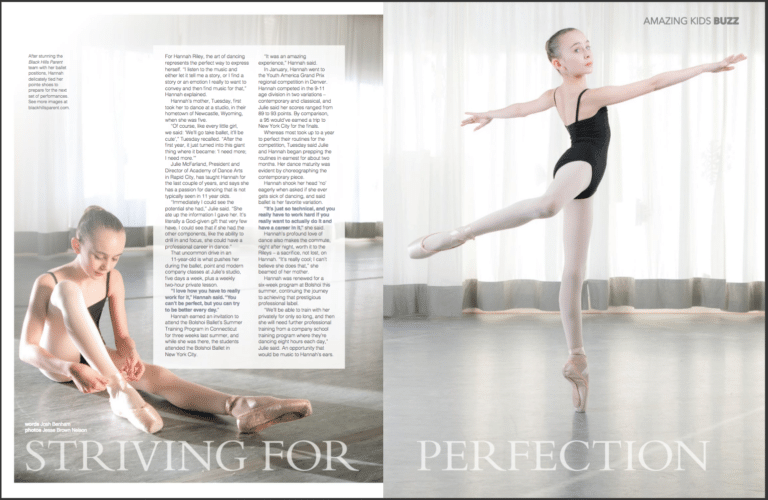 Black Hills Parent Magazine’s Spring 2018 issue features Academy dancer, Hannah Riley in the article “Striving for Perfection”. Click on the image below to read the full article.