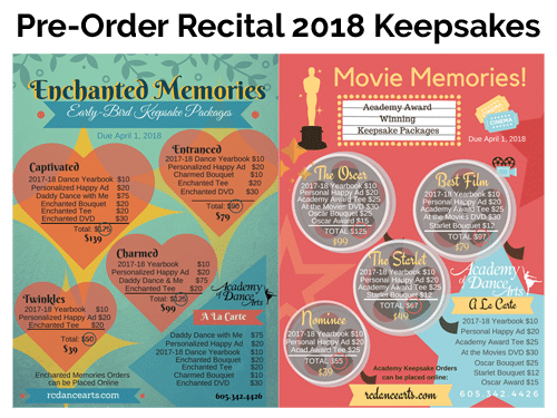 Recital 2018 Keepsakes are available to order until April 1, 2018. Click the links to place your order today!!!
